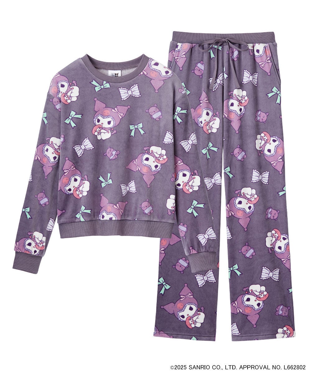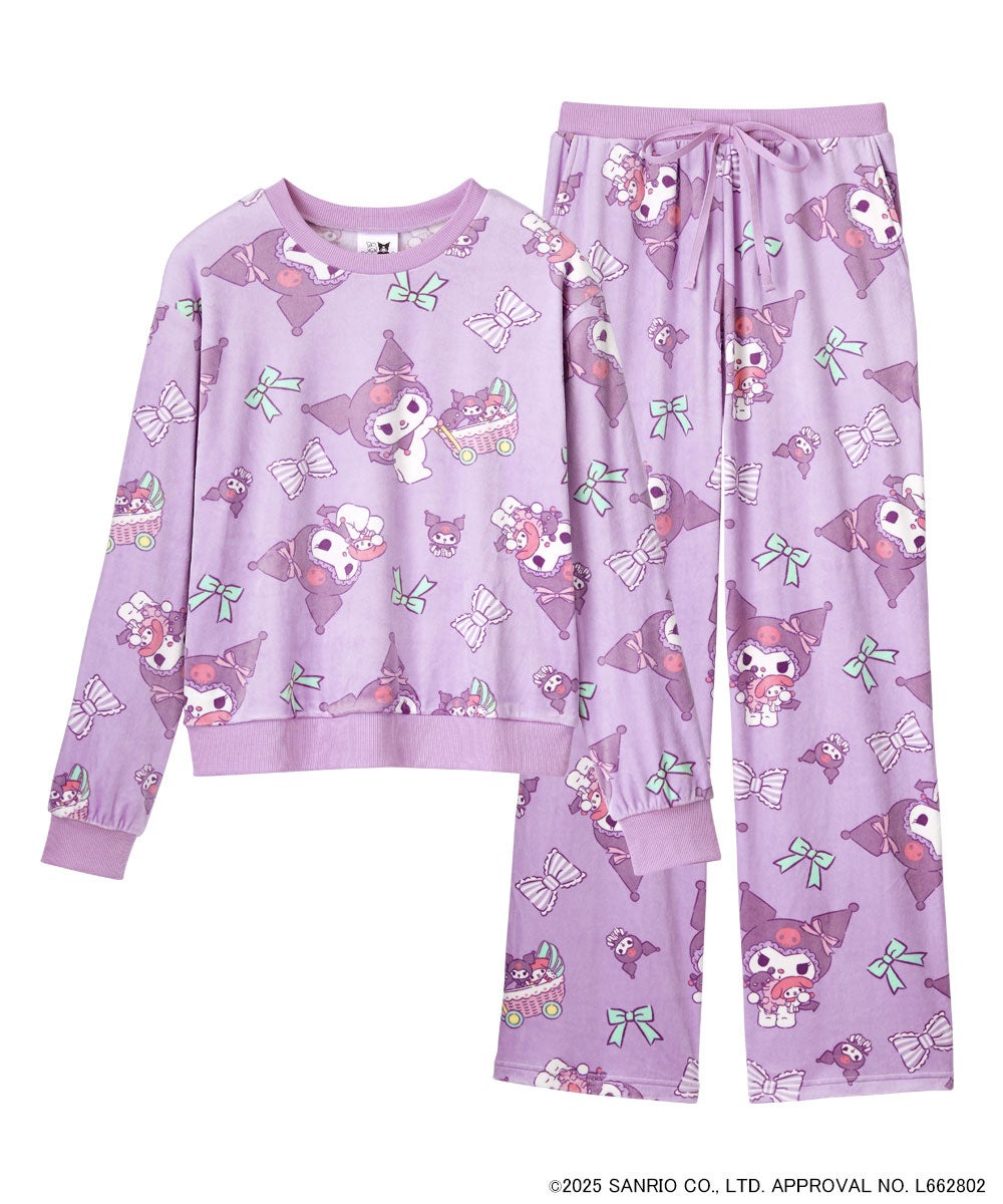 これからの寒いシーズンに大活躍してくれる、あたたかいフリース素材です。バックに可愛いクロミが大きく刺繍されたSNS映え間違いなしのキュートな上下セット。別々で着用してコーディネートも楽しめちゃいます。おうち時間はもちろん、ワンマイルウエアとしても快適にお過ごしいただけます。