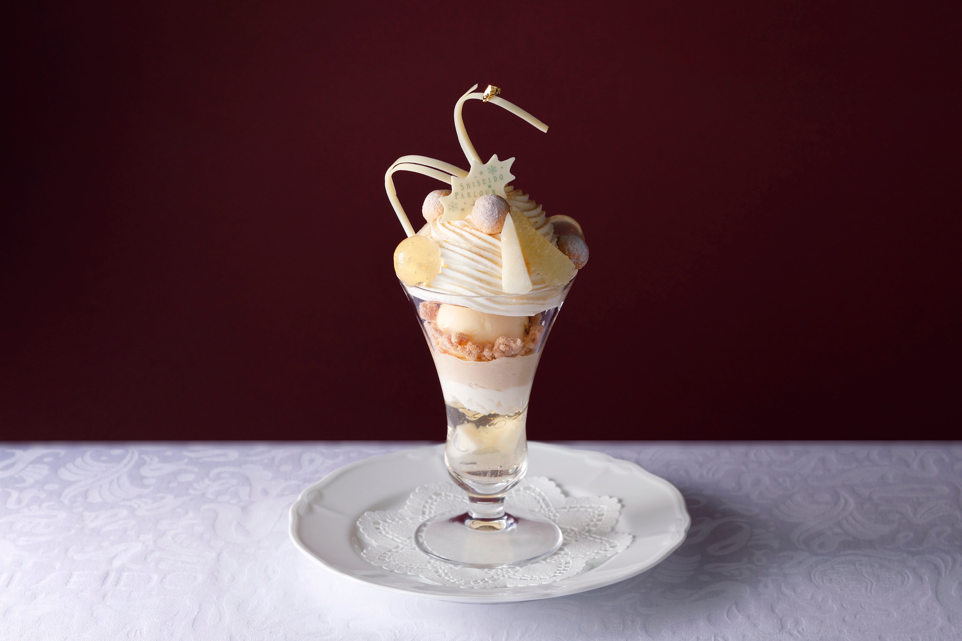 ほんのりスパイシーなレアチーズのクリスマスパフェです。雪のように真っ白な佇まいと、きらきらと輝くシャンパンジュレやスパイシーなシナモンのクッキーが、ホワイトクリスマスの雰囲気を醸し出します。