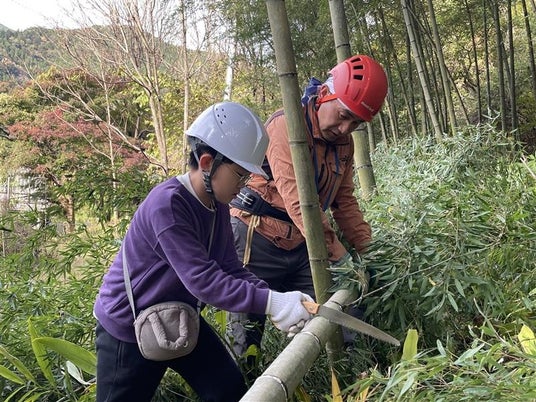 また、地元の方々との交流やJUON NETWORK の方による間伐作業の重要性や竹の生態に関する説明を受け、森林や環境問題について学びました。