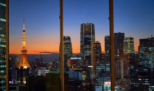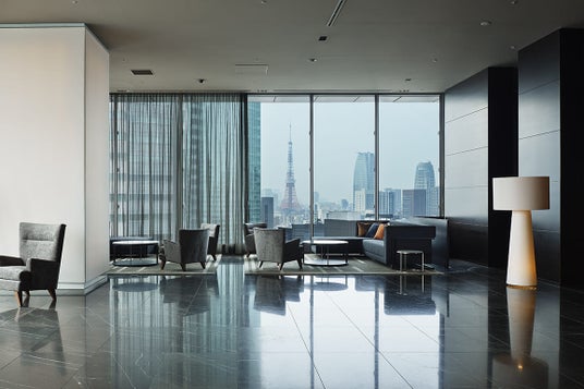 左から、東京タワーが間近にせまるロビー、レストラン、銀座エリアを見渡す全室16階以上