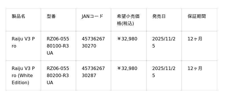 Razer Japan株式会社は、同社の新型ゲームパッドコントローラー「Razer Raiju V3 Pro」の国内発売日を2025年11月25日(火)に決定しました。購入予約受付も本日より開始しました。