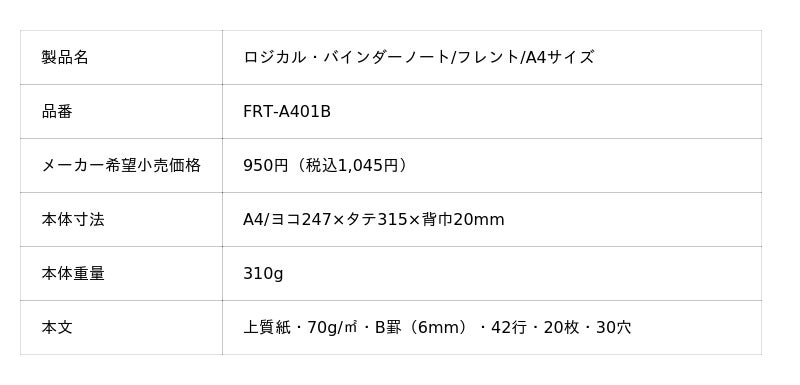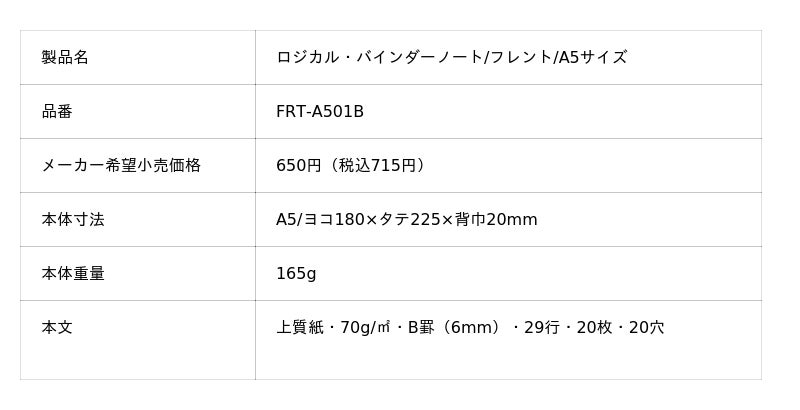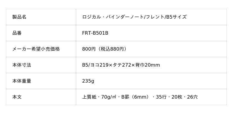 サイズはたっぷり書けるA4サイズ、学生の定番B5サイズ、持ち運びに便利なA5サイズの3サイズをラインアップ。カラーは学校だけでなくお仕事にも使いやすい落ち着いた4色を採用しました。フレントがあればルーズリーフを追加・差し替えができるバインダーノートの使い心地はそのまま、授業中やお仕事中に感じていた「リングへの煩わしさ」を解決できます。
