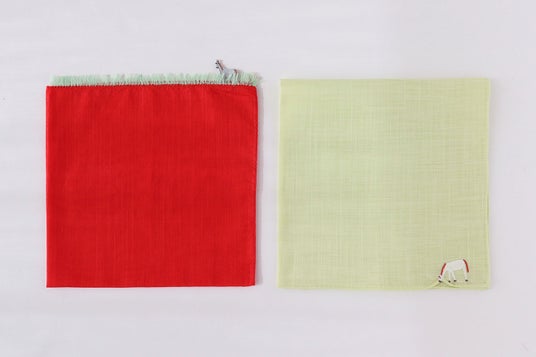 大草原に見立てたハンカチの縁を、引っ張りながら草を食べる馬の様子を刺繍で表現しました。クラシクス・ザ・スモールラグジュアリでは長年愛されている「HIKKOMI(ひっこみ)」シリーズの一つです。ユニークで遊び心溢れる一枚は、ご自身用はもちろんギフトにもぴったりです。