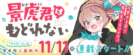 『サメガール』(講談社)『くりことびより』(講談社)の雪本愁二が描く新感覚の羞恥系TSコメディ、『景虎君はもどれない』が2025年11月11日(火)より、株式会社新潮社のWebマンガサイト「くらげバンチ」で連載を開始します。
