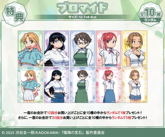 一度のお会計で10回分ご購入ごとに特典ブロマイド(全10種)の中からランダムで1枚、20回分ご購入ごとにランダムで5枚プレゼント!