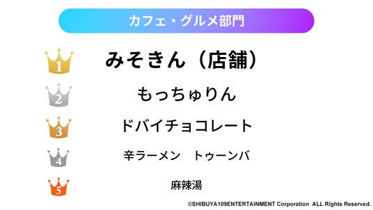 韓国・中国を中心としたアジアフード、特に麻辣湯や火鍋などのヘルシーフードが昨年に引き続きトレンドとなりました。ASMR動画を起点に注目されたフードは、もちもち・パリパリがキーワード。みそきんは2024年メンズトレンド大賞のカフェ・グルメ部門でも1位を獲得しており、根強い人気が見受けられます。