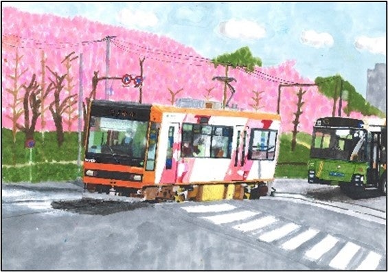 呉 ハラム(おー はらむ)さん 6年生『桜並木の中を走る都電と都バス』