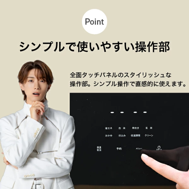 蓄熱性の高い厚釜を採用しており、ふっくらとした美味しいごはんを炊き上げます。