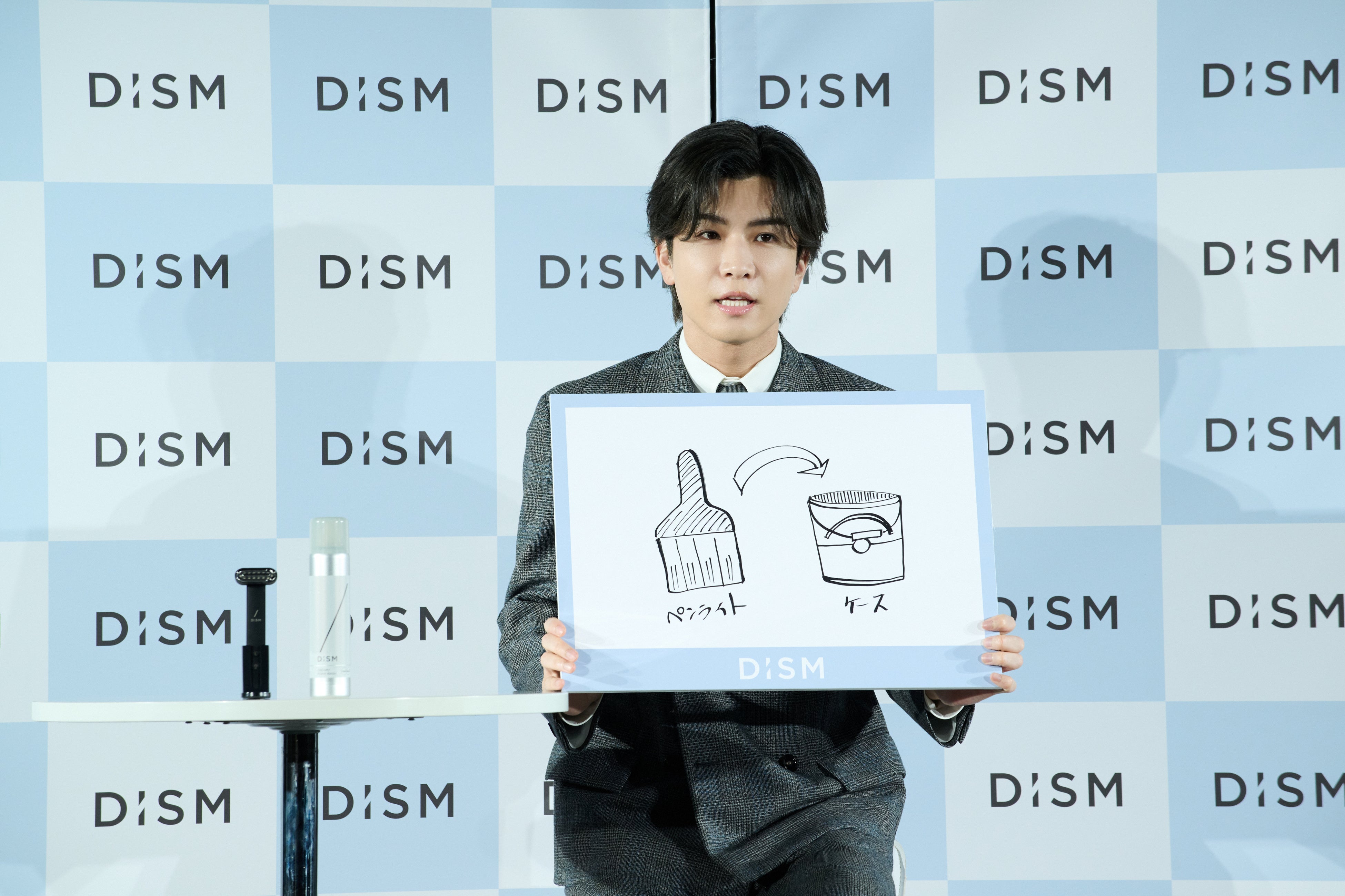 発表会では、リニューアルから約1年を迎えたメンズスキンケアブランド「DISM」のブランド説明、商品紹介の後、岩田剛典さんを起用した新CM「ディズム 美顔器 研究篇」「ディズム 白泡洗顔 飛び出る篇」 が初披露されました。