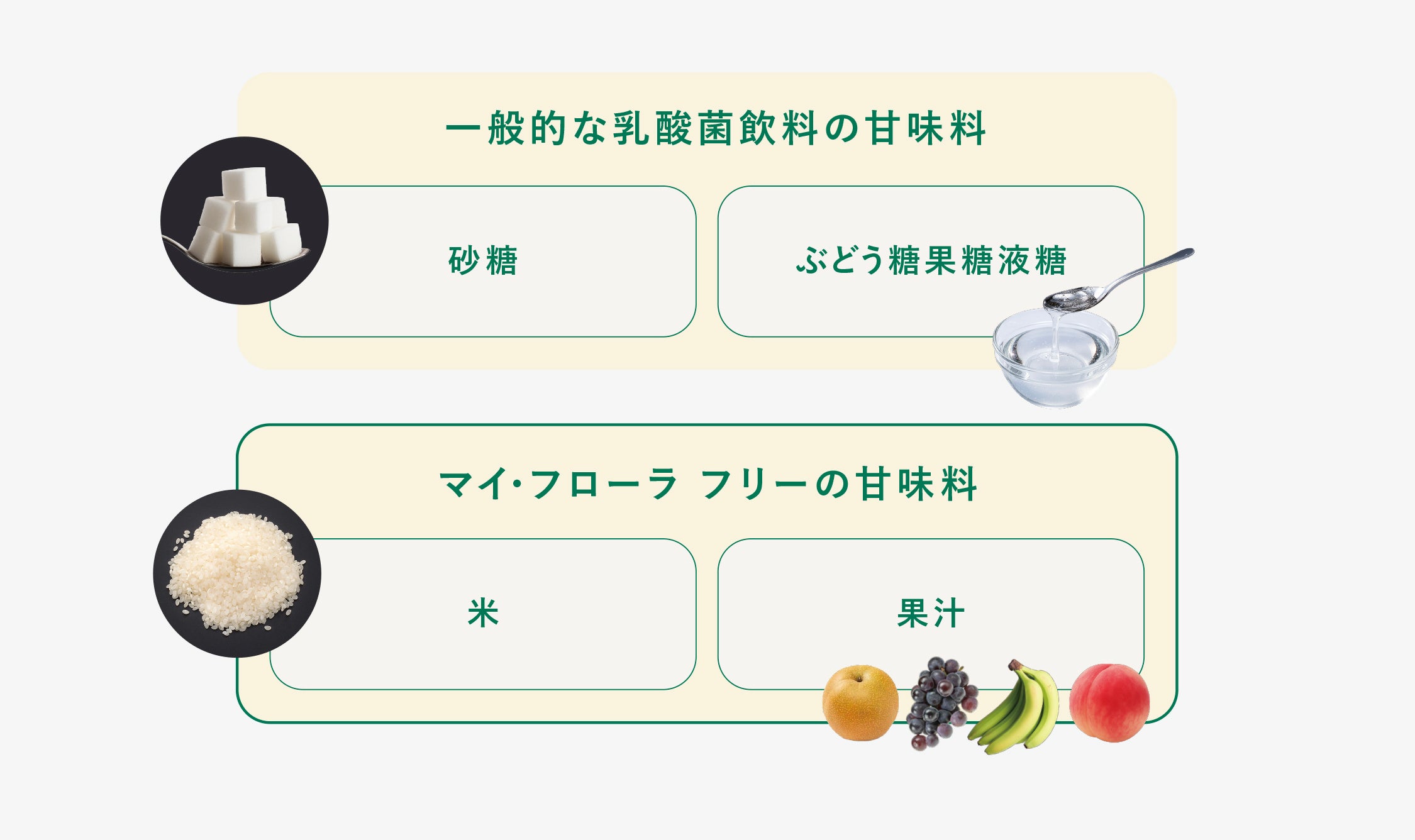 マイ・フローラ フリーは、ゴクゴク飲めて、実感腸活!プラントベース乳酸菌飲料です。味わいは、さらっとさわやかな乳酸菌飲料テイスト。お米が主原料だから、乳糖をほとんど含みません。牛乳が苦手な方にもおすすめです。
