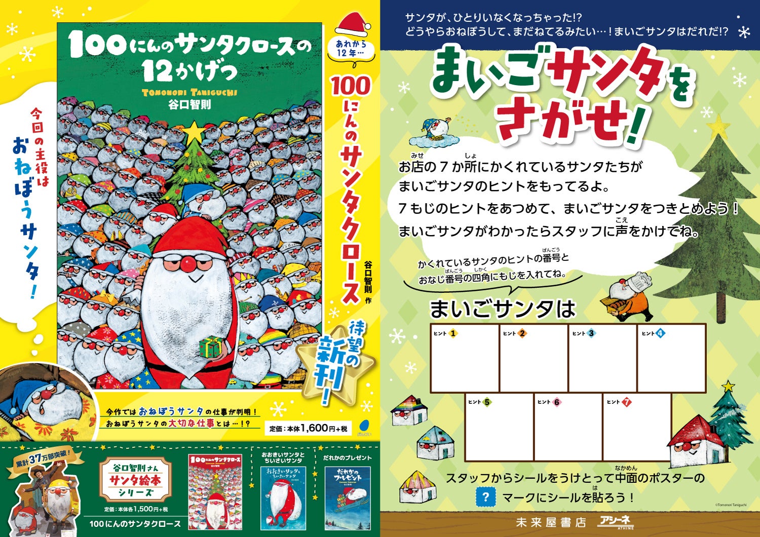 イオングループの株式会社未来屋書店(本社:千葉市美浜区、代表取締役社長:平川雅隆)は2025年冬、絵本作家の谷口智則さんが描く、人気絵本「100にんのサンタクロース」(文溪堂)とコラボしたクリスマスフェアを開催します。