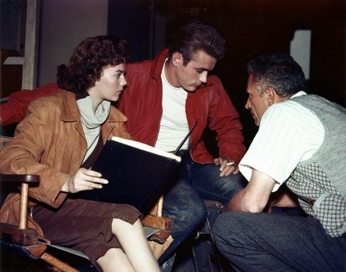 5.『理由なき反抗』(1955年、ニコラス・レイ監督)撮影中のナタリー・ウッド(左)、ジェームズ・ディーン(中央)、ニコラス・レイ(右) 映画芸術科学アカデミー マーガレット・ヘリック図書館所蔵 / Image courtesy of Margaret Herrick Library, Academy of Motion Picture Arts and Sciences