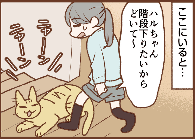 ハルちゃんは、「人が自分の話をしている」という状態がめちゃめちゃに好きなので、こうして階段のところなどにいると話しかけてもらえる!と最近気づいて本当にしょっちゅうここにいます…(笑)