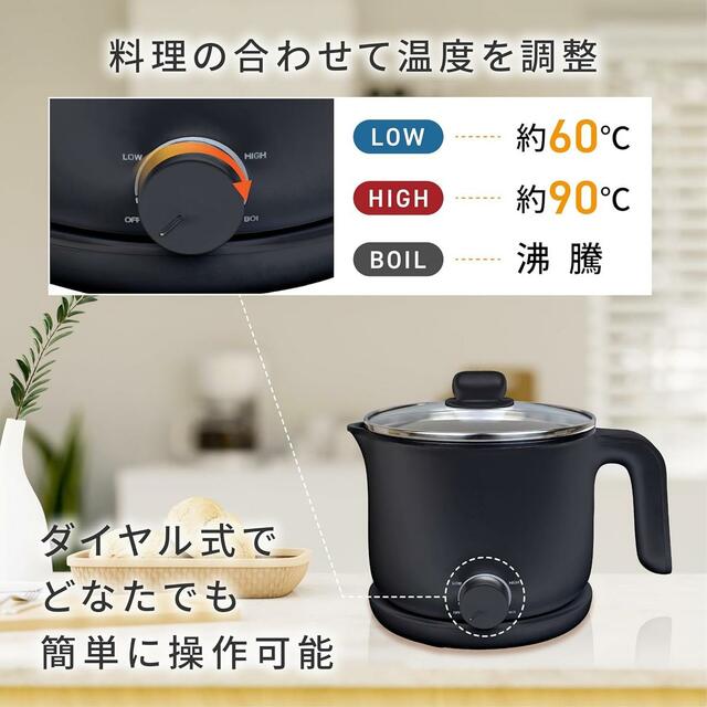 本体下部にあるダイヤルを回して温度調節が可能。LOW(約60℃)・HIGH(約90℃)・BOIL(沸騰)と3段階の切り替えもスムーズです。