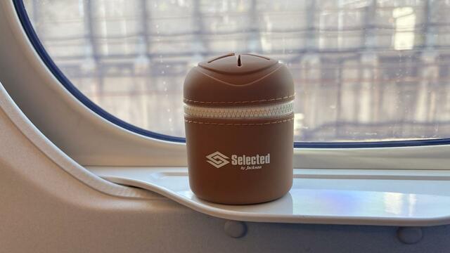 新幹線でも危なげなく置けました。多少の揺れがあっても全く問題なく自立してくれるのは頼もしい限り!