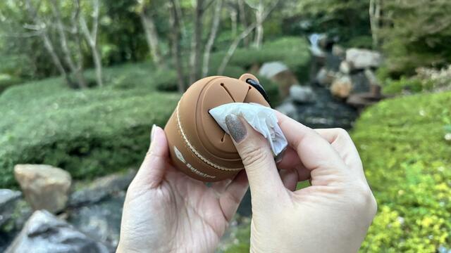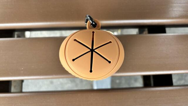 カラビナが付いているのでバッグに取り付けやすいし、約63gと軽量なので持ち歩きも苦になりません。アウトドア感が強すぎないナチュラルなデザインもいい感じ!