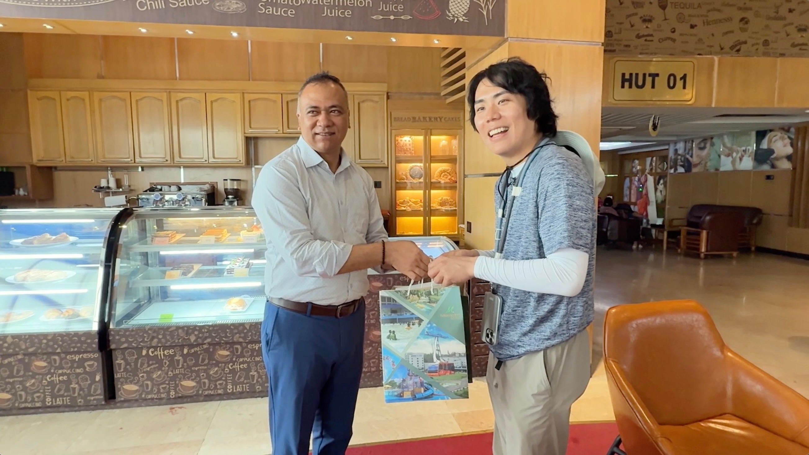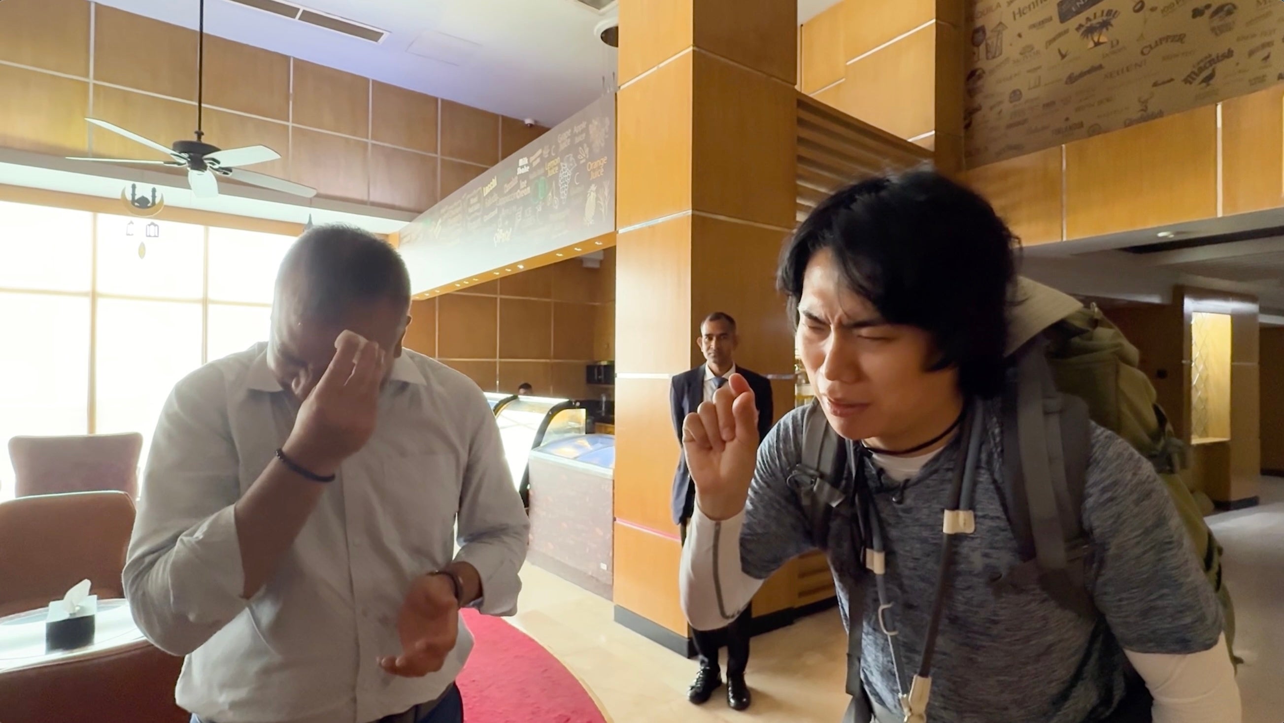 11月9日(日)放送の#7では、南アジア旅5日目を迎え、バングラデシュ北部の都市・ボグラにある高級リゾートホテル・モモインを堪能したくるまは、思いつきで「社長に会うことはできますか?」とホテルの受付係員に直談判します。くるまの申し出に「急な対応はできません」と当然の回答が来たものの、実質“No.3”という立場にあたるホテル取締役との接触に成功。「すごい良かったです。素晴らしいホテルでした」「ここはもっと日本人旅行客が増えると思います」とにこやかに挨拶を交わしたくるまでしたが、「ただ、もしできれば…シャワーの温度をもう少し上げてほしい。日本人は温水シャワーがとっても大事です」と提言。「a bit hotter, please…(もう少しだけ温度を…)」と英語交じりでどうにか伝えようとするくるまに、取締役の男性は「OK!OK!任せてください」と困惑しながら返事をしました。