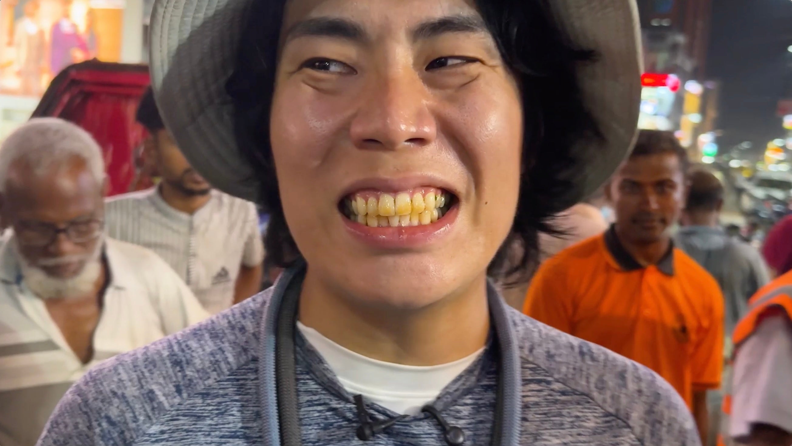 無事に目的地のランプルに到着したくるまは、町の食堂で夕食をとったあと、嗜好品として現地民に馴染みの深い“噛みタバコ”に挑戦。木の実などを葉で包んだ“噛みタバコ”初体験したくるまは、「歯が信じられないくらいキシキシします」「エナメル質が全部溶けました」と感想をコメント。旅に同行する大前プジョルジョ健太ディレクターから「めっちゃ歯に悪いらしいですよ」と告げられると、「俺いま虫歯治してる途中なんですよ」「やばいじゃん」と苦笑しました。