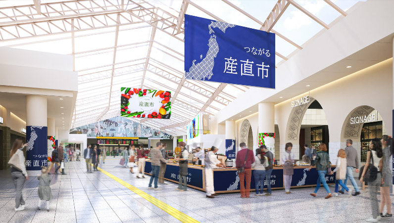 上野駅の“つなげる(HUB)”機能を活用して、五感で地域の魅力を体験できる「つながる産直市」を実施します。「上野広小路口ビジョン」「UENO CANVAS」「PLATFORM13」等による情報発信に加えて、地域の新鮮な食材を駅へ直送する鉄道輸送サービス「はこビュン」や、「UENO ZERO」「ポレイア広場」等ショールーミングスペースでの試飲試食、地域の生産者・クリエイターとのリアルなコミュニケーションや地域のまつり等迫力ある伝統文化の鑑賞体験等を組み合わせることで、地域の魅力をこれまで以上に豊かに体験できるようになります。地域の魅力を地域の新たな「食」や「工芸」の発表の場としても活用し、駅での地域体験を創造し、地域の経済活性化や、新たな魅力発掘の共創・循環をつくります。