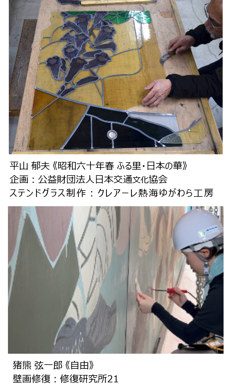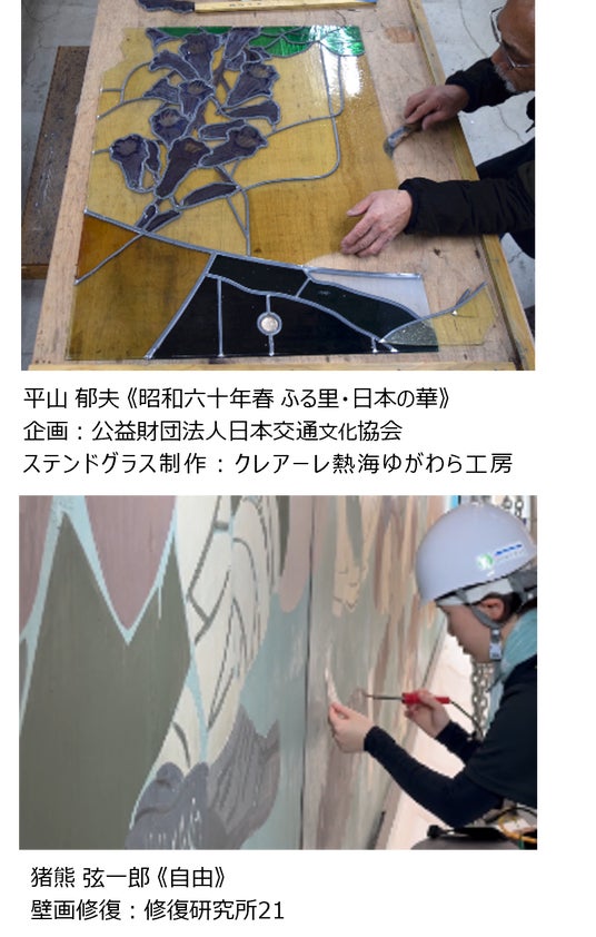 上野駅がまちと共に発展してきた歴史を重視し、歴史や文化を次代につなぐ取り組みとして、猪熊弦一郎氏が1951年に制作した壁画《自由》の修復や、平山郁夫氏原画・監修によるステンドグラス《昭和六十年春 ふる里・日本の華》の修復を進めています。ステンドグラスは、新幹線改札内への移設・修復をしており、これまで以上に身近に作品を鑑賞できるようにします。