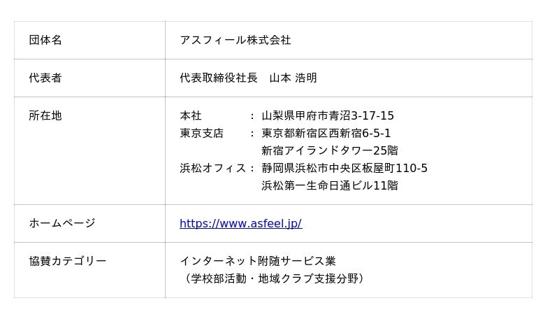 アスフィール株式会社には、今後は、国民スポーツ推進事業をはじめとした事業を展開する当協会のオフィシャルサプライヤーとして、力強いご支援・ご協力をいただくこととなります。