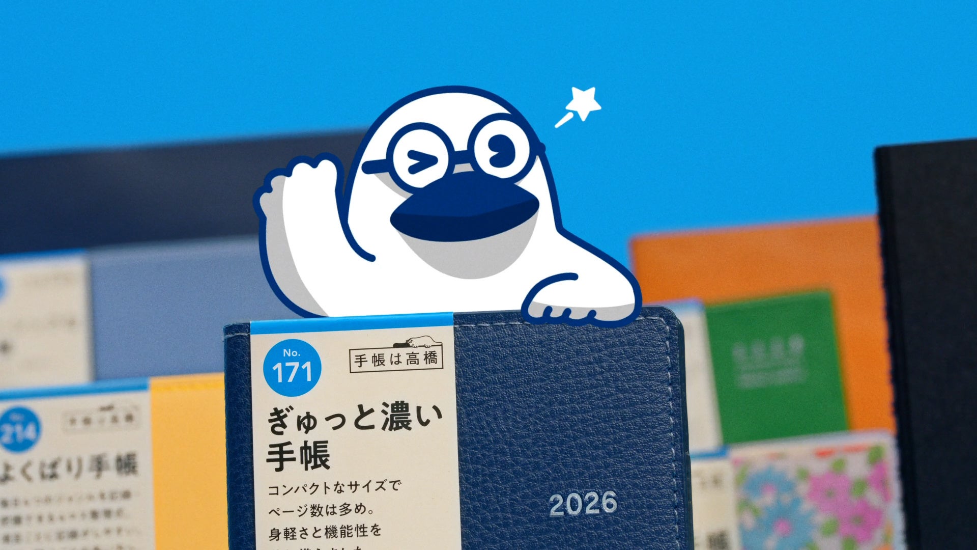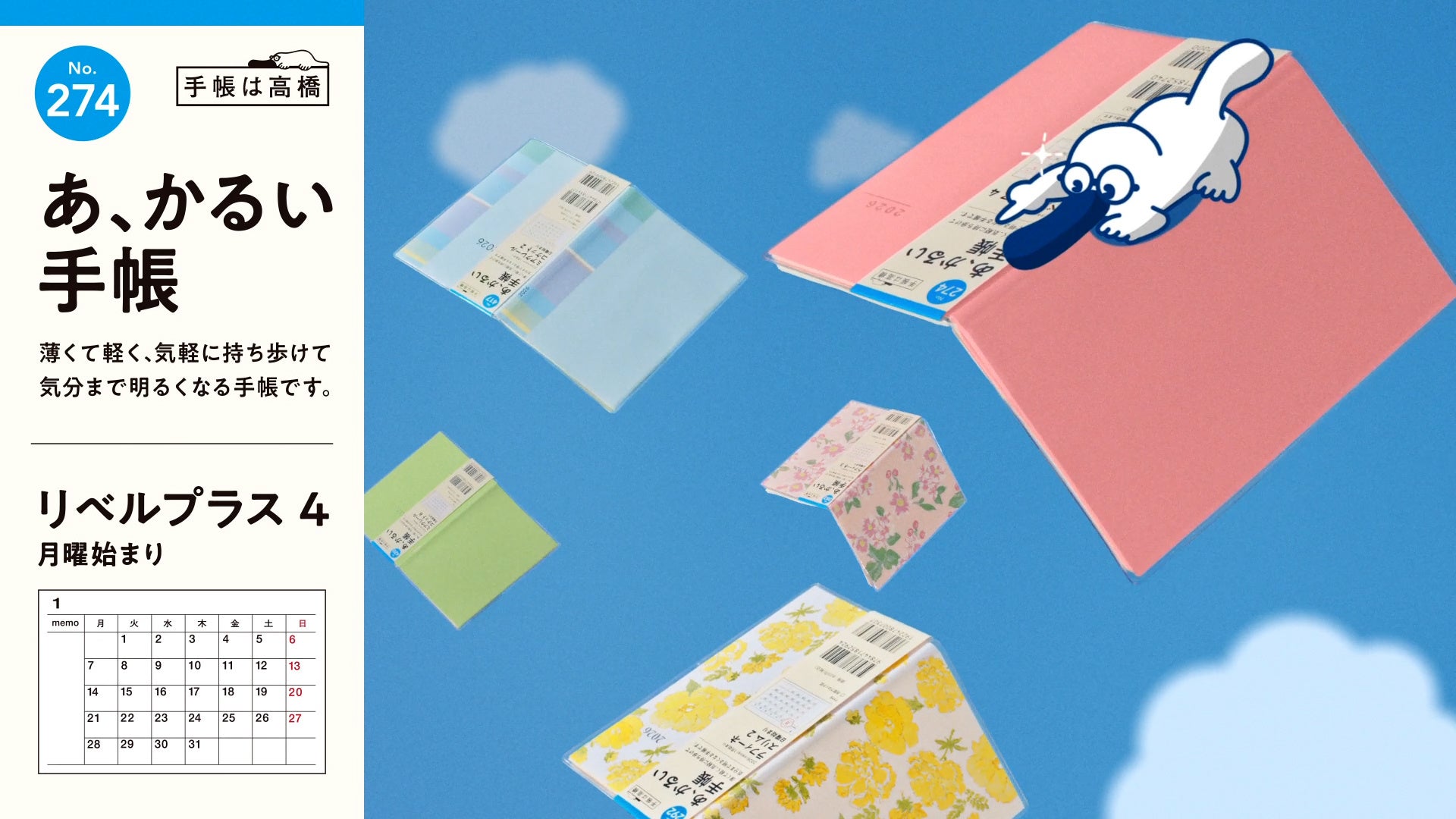 様々な手帳の使い方がある中で、あなたの「やってみたい!」にJUST FITするように揃えた今年の手帳。「手帳は高橋」のキャラクターのたかもんが、軽快な音楽に合わせて様々な手帳と一緒に行進することでみんなのやりたいことを叶える一冊が見つかることを訴求します。