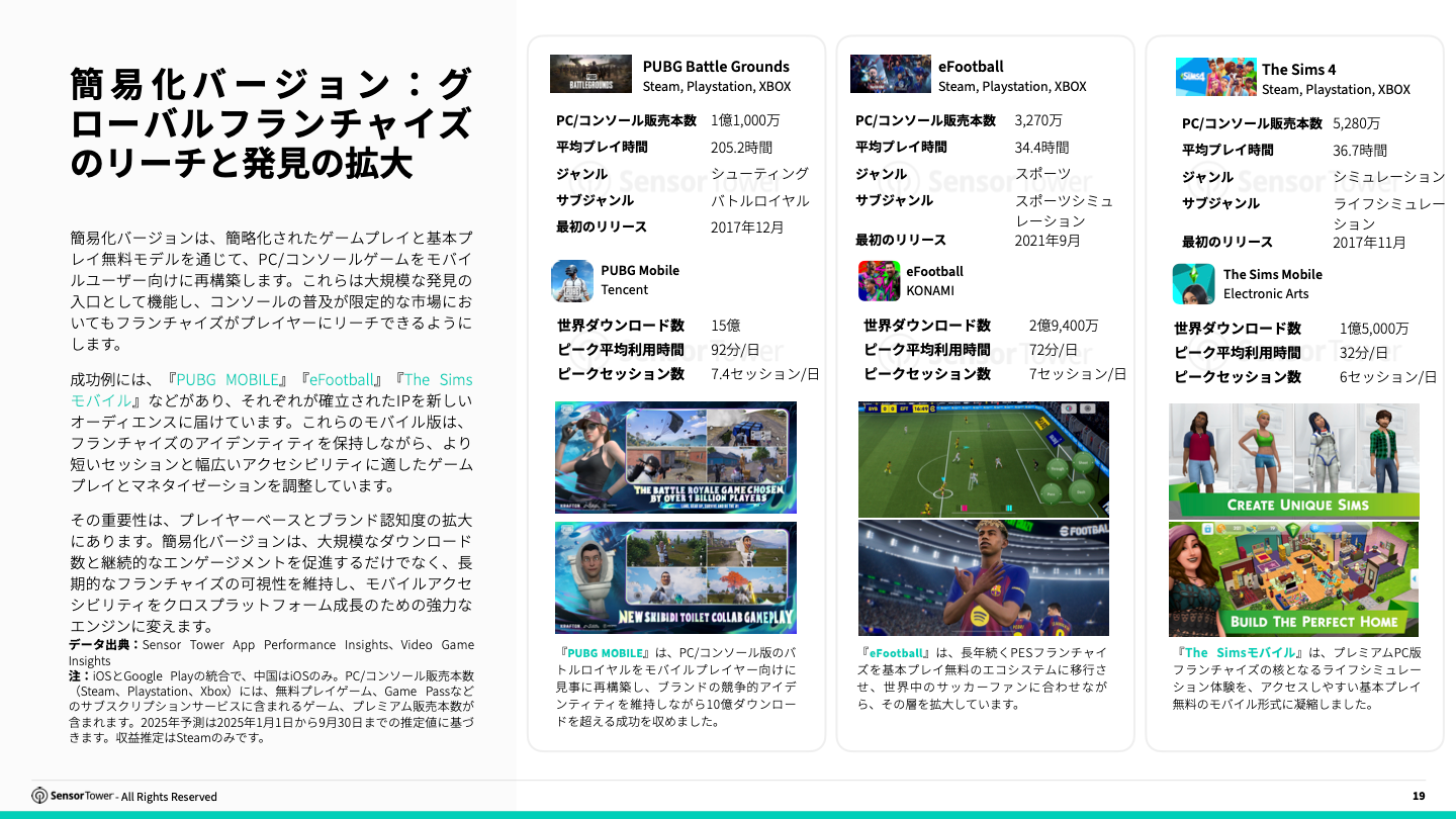 その重要性は、プレイヤーベースとブランド認知度の拡大にあります。簡易化バージョンは、大規模なダウンロード数と継続的なエンゲージメントを促進するだけでなく、長期的なフランチャイズの可視性を維持し、モバイルアクセシビリティをクロスプラットフォーム成長のための強力なエンジンに変えます。