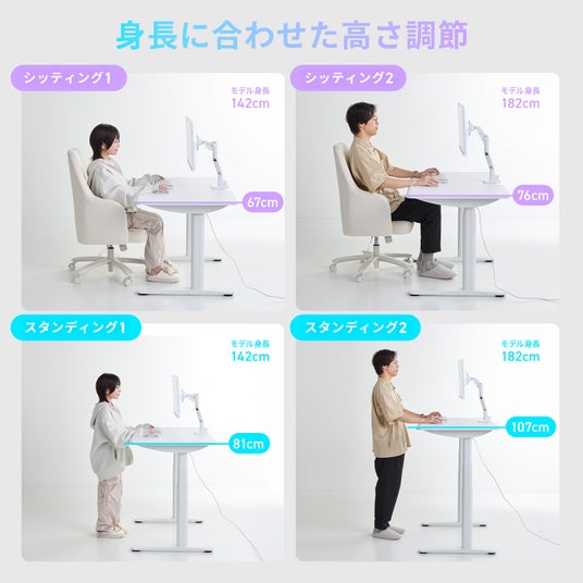 電動昇降機能は最大60cmの昇降幅を持ち、2脚それぞれにパワフルなモーターを採用したことで安定感がありつつ、静音性も追求した昇降動作を実現しました。