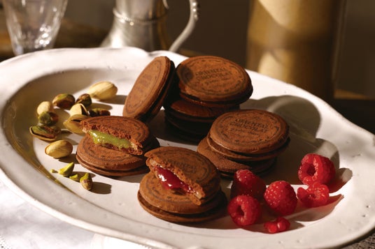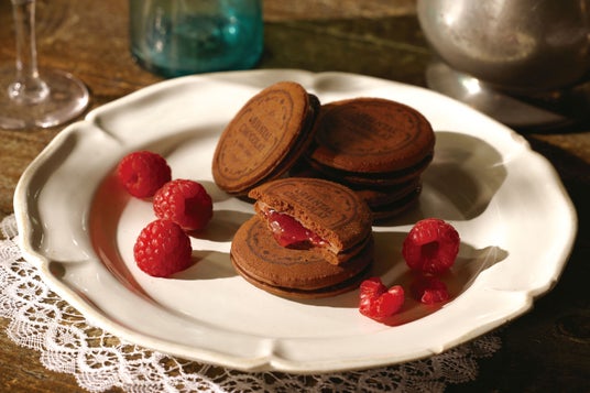 風味豊かなラズベリーソースを、ミルクチョコレートでコーティングし、ココアクッキーでサンドした、贅沢な味わいのサンドクッキーです。濃厚なチョコレートの風味と、ラズベリーの爽やかな酸味のコントラストをお楽しみいただけます。