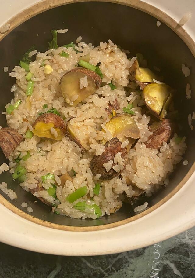 そして、本日の大ヒット料理は「栗ごはん」。東京都杉並区高井戸にあるという栗園で採れた栗。渋皮つきのやつを炊き込んでみました。ポクっとしたその美味しさにびっくり。こりゃ美味い。それにしても高井戸に800本の栗の木のある栗園があるとは! これまたびっくりでした。