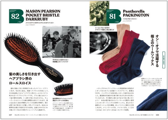 右) オン/オフで活躍する、極上のウールソックス「パンセレラ パッキントン」 左) 髪の美しさを引き出す、ヘアブラシ界のロールスロイス「メイソンピアソン ポケットブリッスルダーク・ルビー」