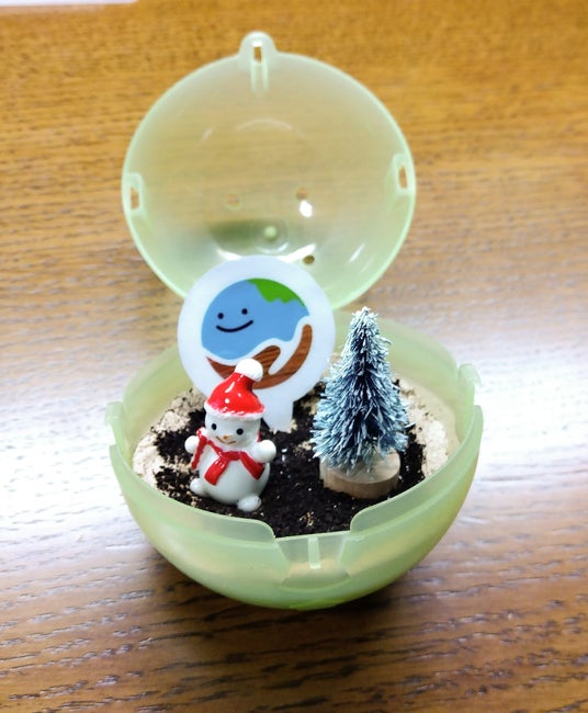 カプセルトイの空のカプセルと、コーヒーグラウンズで作品を作ります。