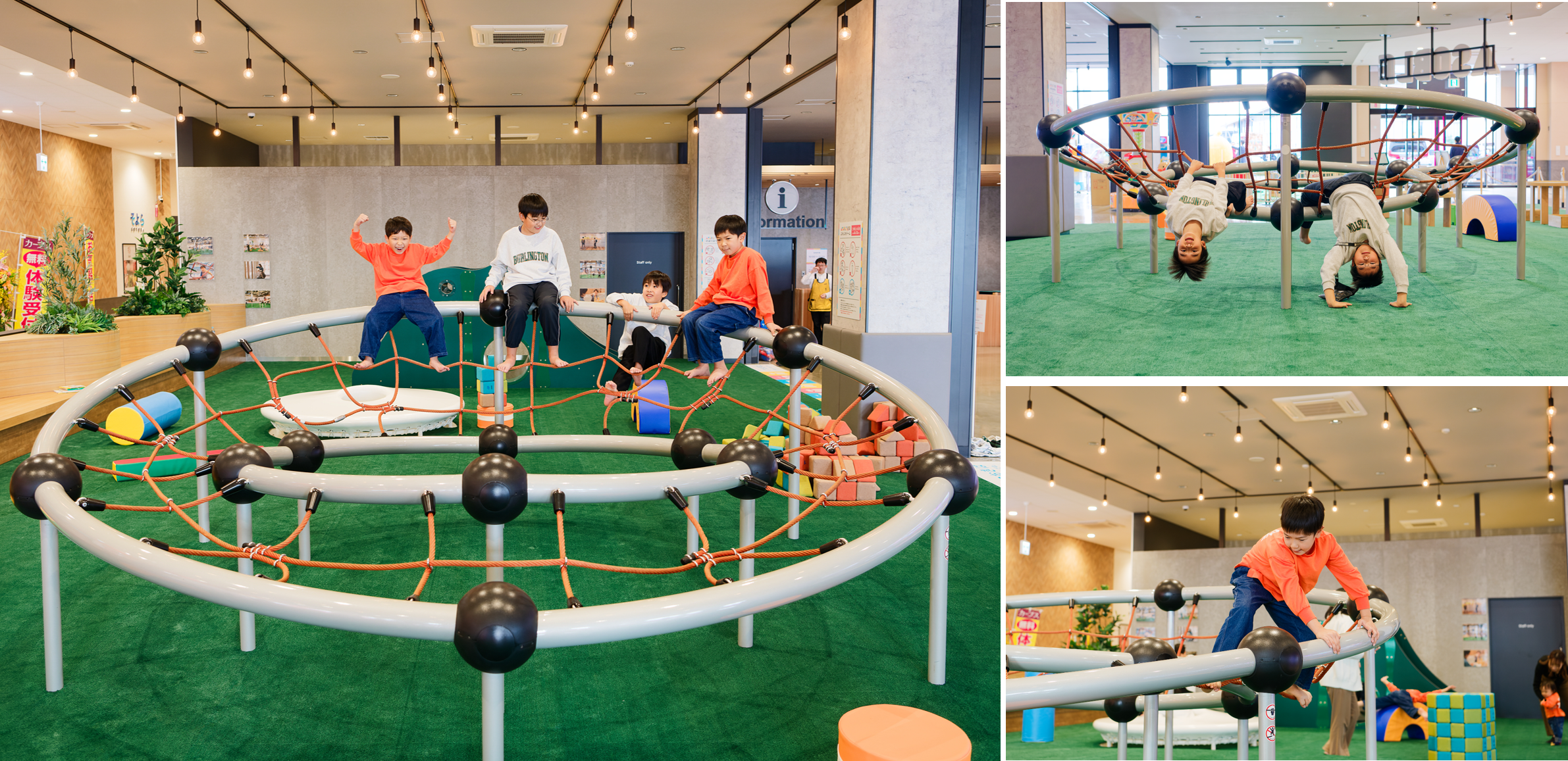 ASOBLEそよら三条須頃店に設置されるMIRAPPA(ミラッパ)は、今年10月にフィナーレを迎えた大阪・関西万博にて、株式会社ワイドレジャーが出展した「WIDE LEISURE EXPO 2025 遊んでい館?」内に設置された遊具。万博会期中、延べ52万人が来場した「遊んでい館?」のメインコンテンツとして、多くのこどもたちを楽しませました。特徴的な形をしており、木登りのように考えながら遊べるため、注意力や判断力を養える知的遊具です。