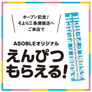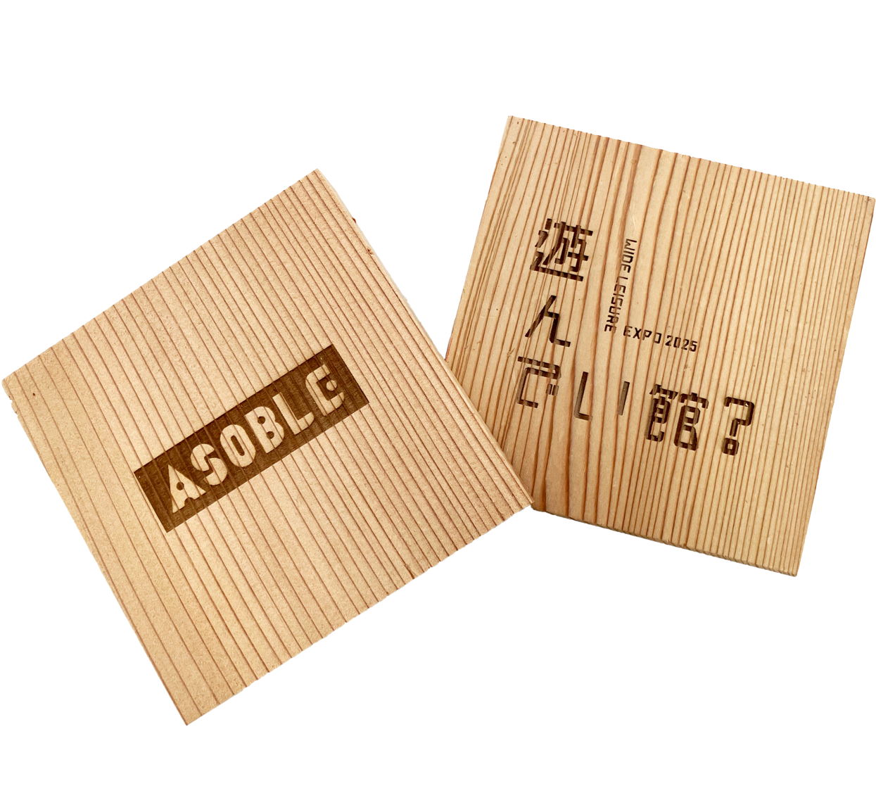 今だけのオープン記念として、11月12日(水)より、ASOBLEオリジナルデザインの「えんぴつ(※1)」「エコバッグ(※2)」をプレゼント。さらに、11月15日(土)からは、「WIDE LEISURE EXPO 2025 遊んでい館?」のフローリングなどに使用されていた九州産銘木を使った「オリジナルコースター(※3)」も数量限定で配布いたします。