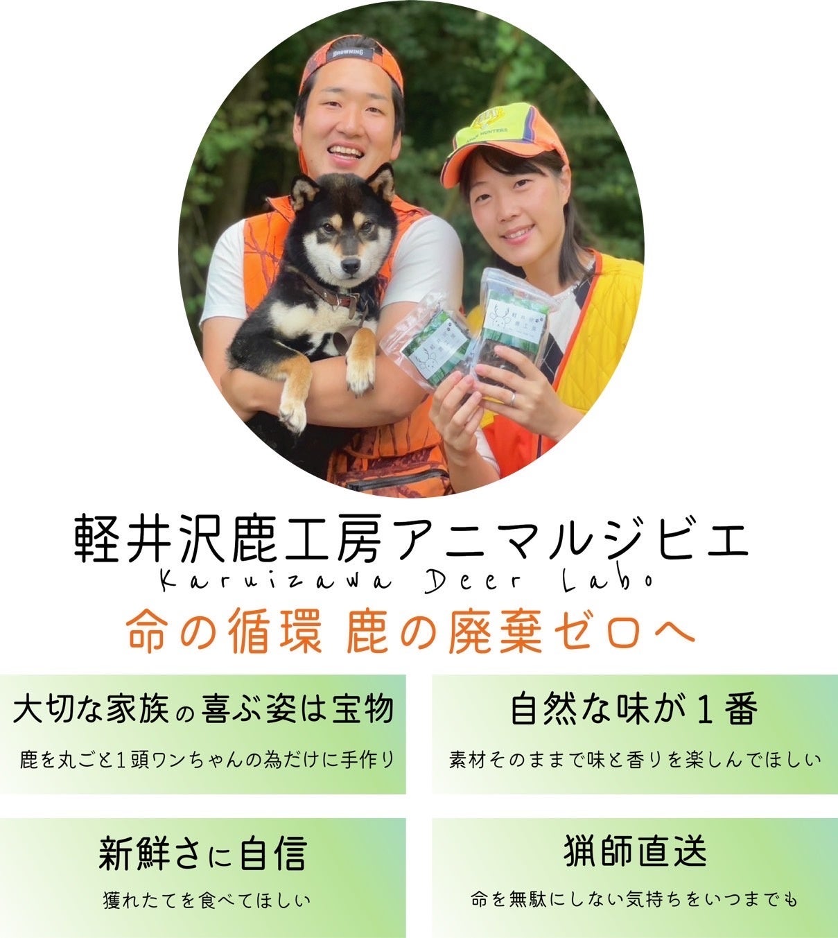 ご近所の犬好き×獣好き×デザイナーが本気で始めたペットのジビエオヤツ屋さんです。