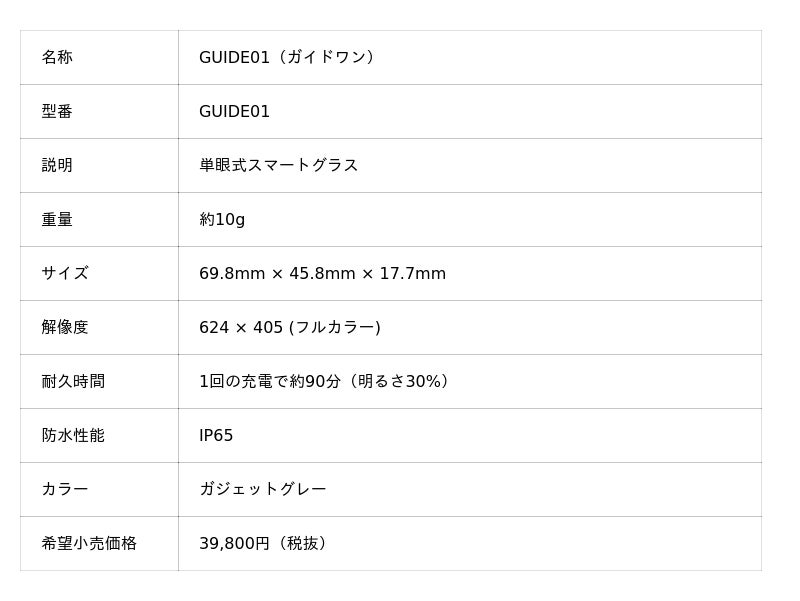 GUIDE01は、この課題を解決するため “全てのメガネがスマートグラスになる” をコンセプトに開発しました。愛用のメガネに簡単に装着でき、かけていることを忘れるほどのわずか10gを実現。日常にガジェットを取り入れたい30代~50代の男性をメインターゲットに、実用性と快適性を徹底的に追求しました。