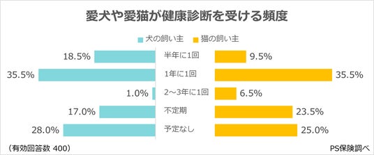 ペット保険「PS保険」を提供するペットメディカルサポート株式会社(本社:東京都港区、代表取締役社長:米満 明仁)はこの度、全国の20~69歳の犬や猫の飼い主1,879名(有効回答数400)にアンケートを実施し、「愛犬や愛猫の健康診断」に関する実態を調査しました。その結果を、詳しく紹介いたします。