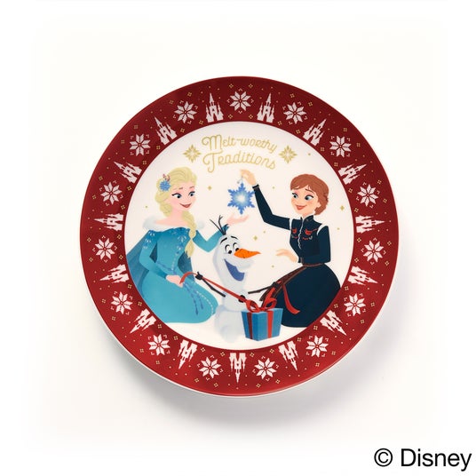 「<アナと雪の女王>クリスマスプレート」は、嬉しそうにプレゼントを開ける<オラフ>を<アナ>と<エルサ>が見守るクリスマス限定デザイン。料理を盛り付けても飾っても、食卓が華やぎます。磁器ならではの滑らかな上質感ある手触りが特徴で、クリスマス後も冬のシーズンプレートとして長く活用いただけます。