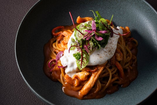 ブッラータチーズを乗せた甲殻香るビスククリームパスタ ランチ&ディナー:3,000円 蟹と海老を加えたビスクに生パスタを絡めました。トッピングにバターのような風味とまろやかな甘みがとろける出すブッラータチーズをのせたクリスマス期間限定のパスタ料理。
