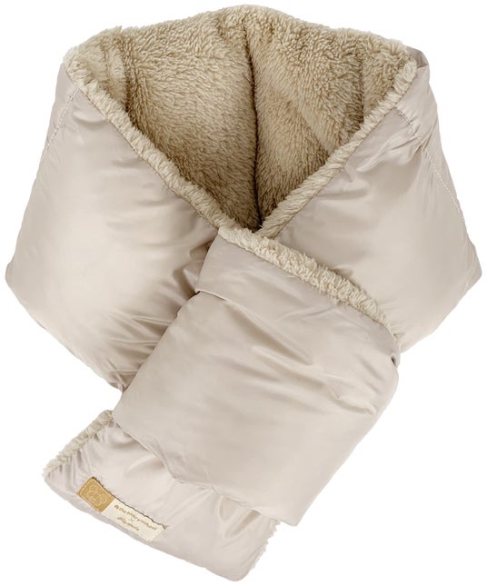 ふわふわのボア素材とキルティング生地を組み合わせた、冬にぴったりの中綿マフラーです。ナチュラルなカラーで、福袋限定の「くまのがっこう」のかわいらしいコラボタグがアクセント。軽量で暖かく、外出の際やおうち時間に活躍します。
