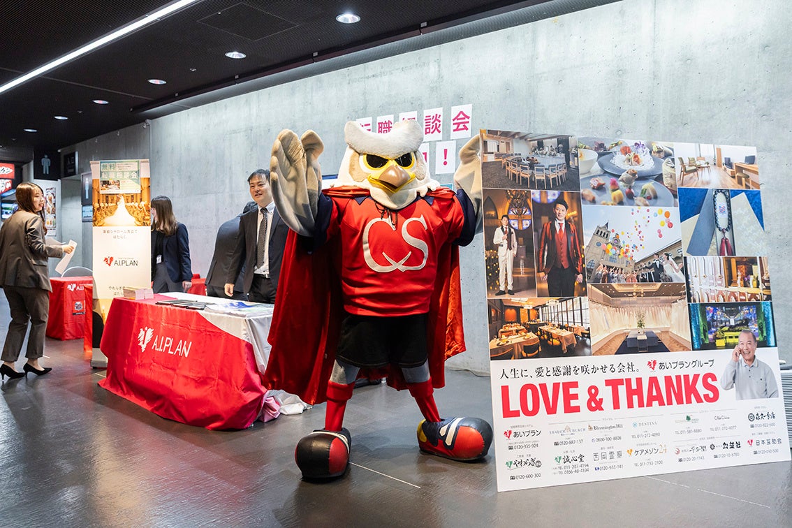 当日はあいプランシステムの紹介や、結婚式場の案内、コンサドーレコラボ念珠などの販売等、複数の特別ブースを設置。試合開始前から多くの来場者で賑わいを見せました。