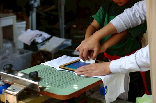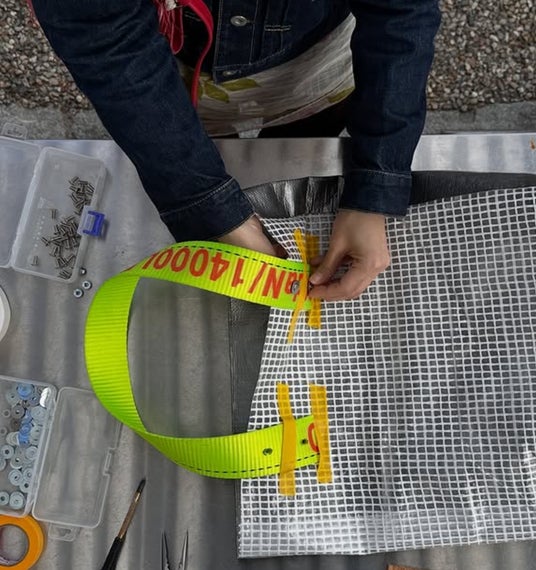 古着にシルクスクリーン印刷をしたり、産業資材を使って“縫わないトートバッグ”をつくったり、