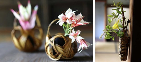花籠とは、草花を挿して飾るための器で、茶道や華道でも古くから親しまれてきた日本の伝統工芸品のひとつです。素材には竹が使われることが多く、編み方や形状によって趣が異なり、季節の花々を引き立てる控えめで美しい佇まいが魅力です。