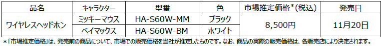株式会社JVCケンウッドは、Victorブランドより、ディズニーストアとの共同企画として、ワイヤレスヘッドホン「HA-S60W」に「ミッキーマウス」、「ベイマックス」をデザインしたモデル(計2モデル)をディズニーフラッグシップ東京、全国のディズニーストア、およびディズニー公式オンラインストア ディズニーストア.jpにて、11月20日より発売します。