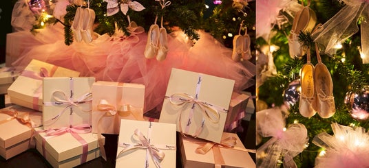 エントランスを入ってすぐのロビーに、フェミニンなピンクに包まれた特別なクリスマスツリーが登場しました。レペットの象徴であるトゥシューズのミニチュアオーナメントや本物のトゥシューズ、チュールが華麗にツリーを彩り、足元のプレゼントボックスがホリデーシーズン気分をさらに高めています。