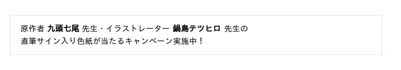 ・九頭七尾先生(原作者)、鍋島テツヒロ先生(イラストレーター)、遠田マリモ先生(漫画家)のお祝いコメント