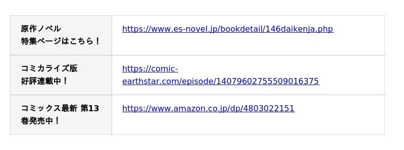 コミック アース・スター:https://comic-earthstar.com/ (毎週木曜18時更新・毎月12日発売)アース・スターノベル:https://www.es-novel.jp/ (毎月15日発売)