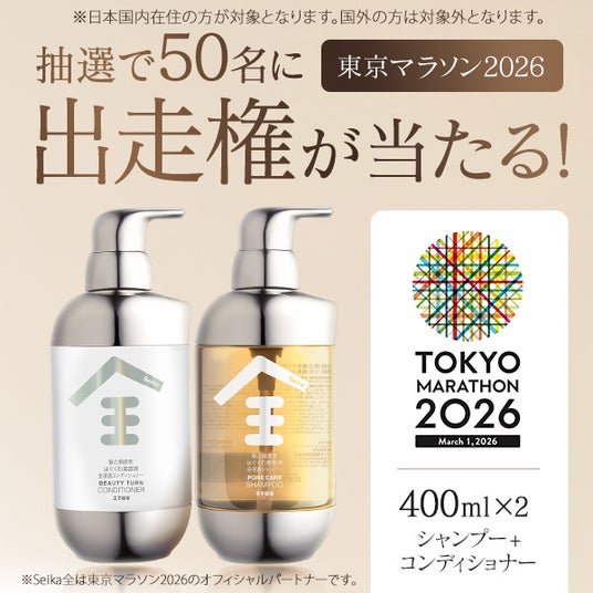 王子製薬株式会社(東京営業所:東京都渋谷区、以下、当社)は 、ヘアケアブランド「Seika 全」の東京マラソン2026オフィシャルパートナー就任を記念し、「東京マラソン2026」への出走権(参加費等当社負担)が当たる抽選プレゼントキャンペーンを2025年 11月 12日(水)~11月 24日(月)の期間で実施します。 “走る人”のコンディションを髪と香りから整える新しいセルフケア文化を、Seika 全は本キャンペーンを通して提案してまいります。