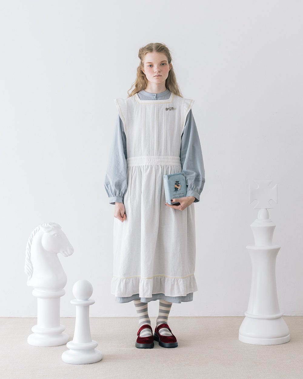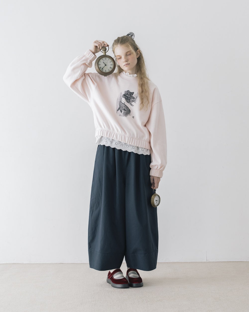 第1弾でも人気のワンピースは、アップデートして2型をご用意。作画でアリスが着用しているエプロンをモチーフにしたワンピースは、冬らしくベロアリボンでシックな雰囲気に仕上げました。スタンドネックのワンピースは、袖や裾にピンタックを施し、シンプルながらもSamansa Mos2らしい甘さをプラス。2着のワンピースを重ねることで、さらに『鏡の国のアリス』の世界観に浸れます。