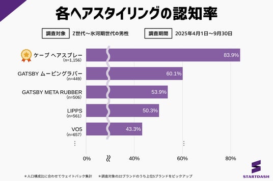 上位に入ったブランドは、いずれも高い認知率を獲得しており、現在の男性ヘアスタイリング市場における代表的な存在と言えるでしょう。